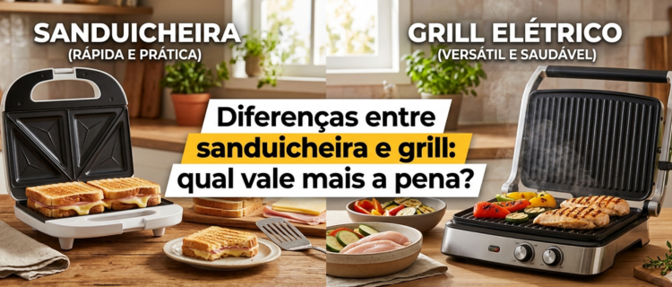 Como a escolha ideal depende muito do uso, conhecer essas diferenças ajuda a encontrar o modelo certo. Ao longo do texto, você verá como sanduicheira e grill funcionam, o que cada um prepara melhor e como avaliar preço, durabilidade e recursos extras.